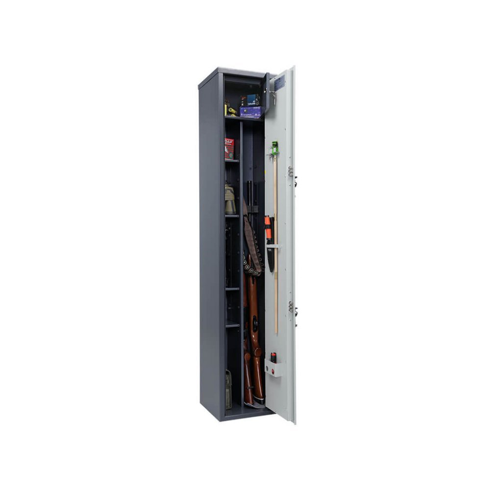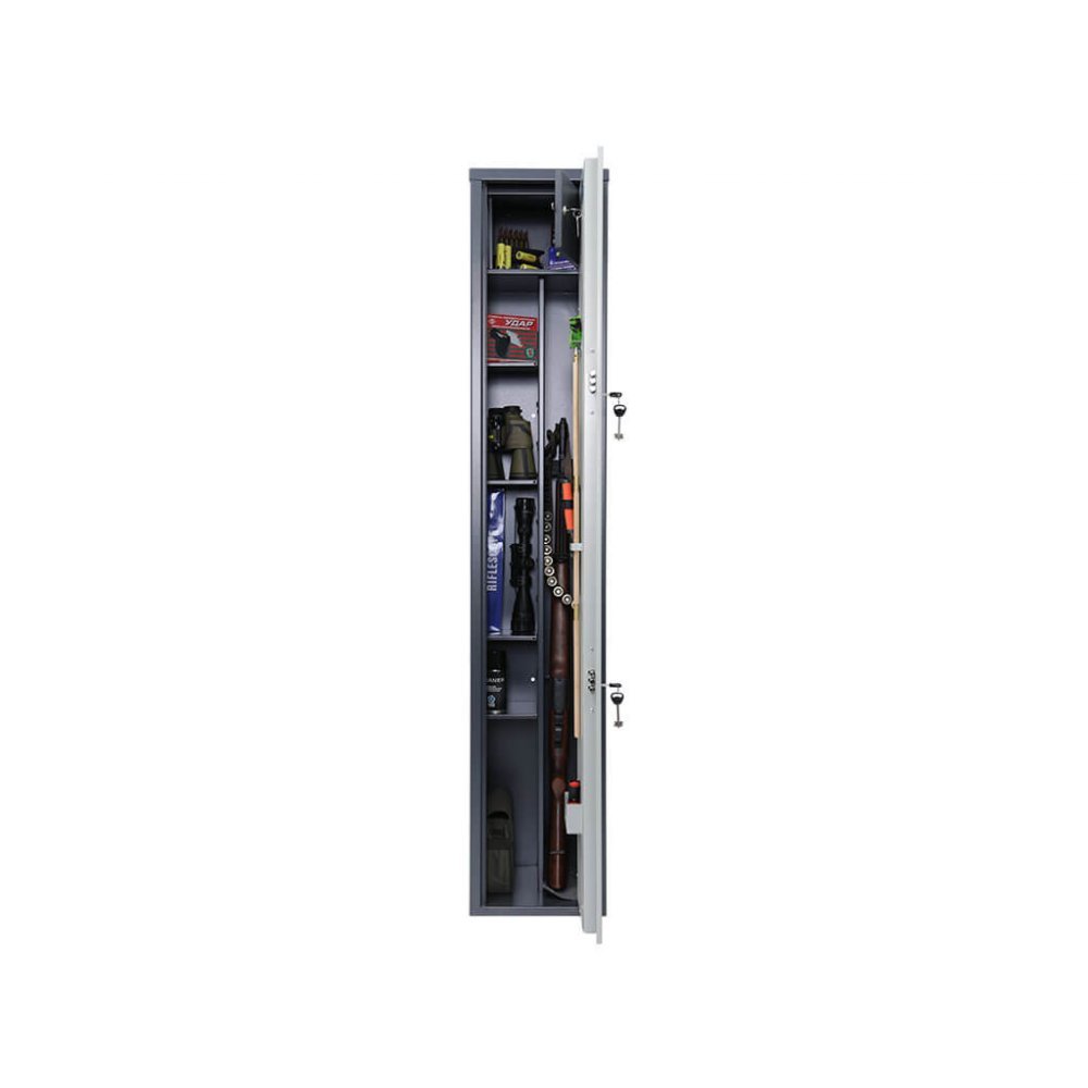 - Рассчитан на безопасное содержание четырёх ружей длиной до 1400 мм в домашних условиях.