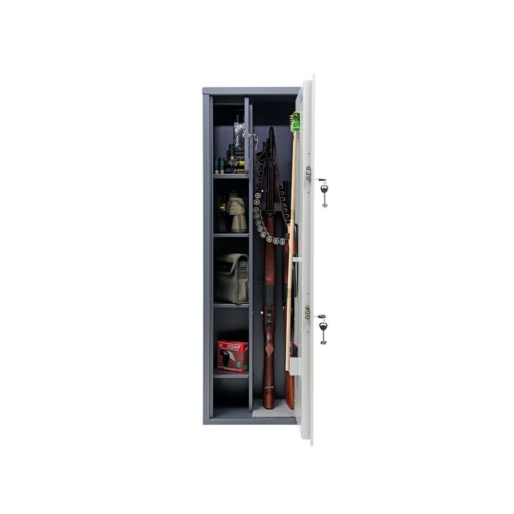 - Рассчитан на безопасное содержание двух-трёх ружей длиной до 1210 мм в домашних условиях.