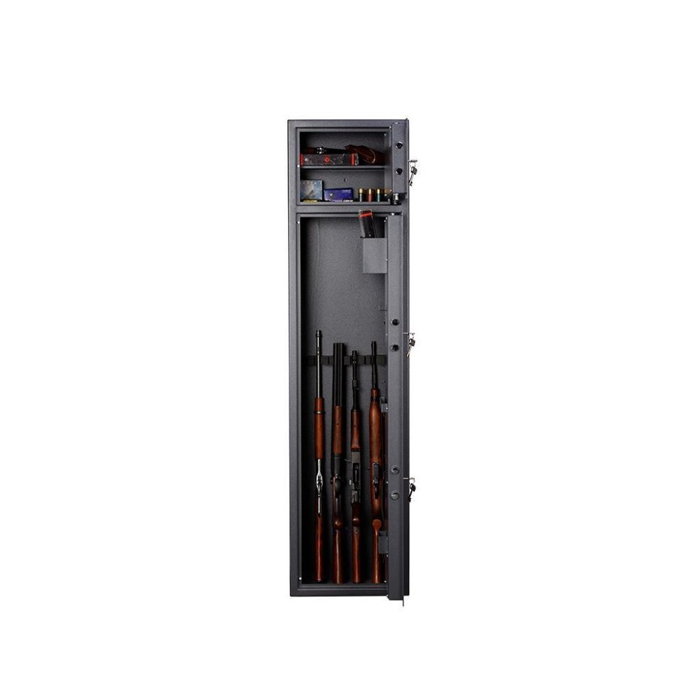- Рассчитан на безопасное содержание пяти ружей длиной до 1384 мм в домашних условиях.