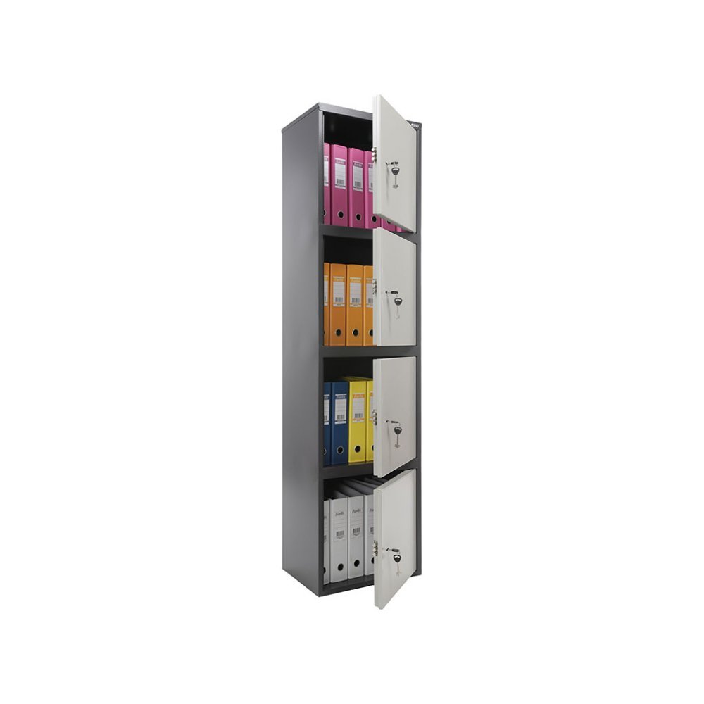 комплектация EL - ключевые замки + электронный замок PLS-1 (на модели с одной дверью устанавливается электронный замок, на модели, где две и три двери электронный замок устанавливается только на верхнюю дверь, на остальные ключевой)