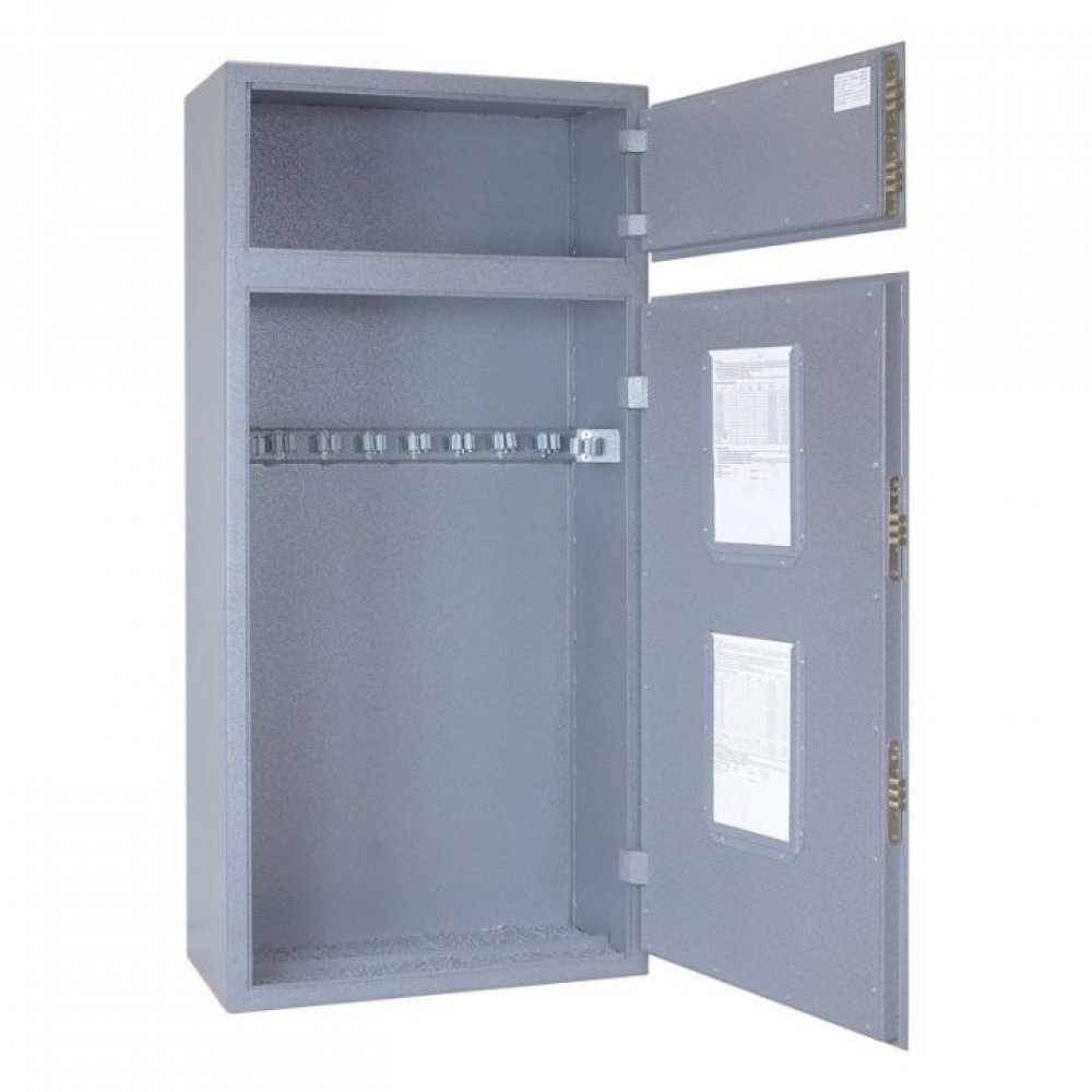 Дверь оснащена двумя 8-ми сувальдными замками производства ЗАО «Про-Сам» или аналогичными замками другого производителя. Внутренняя сторона сейфа оснащена двумя отсеками под рамки для описи. На дне находится ковролиновый коврик, защищающий приклады.