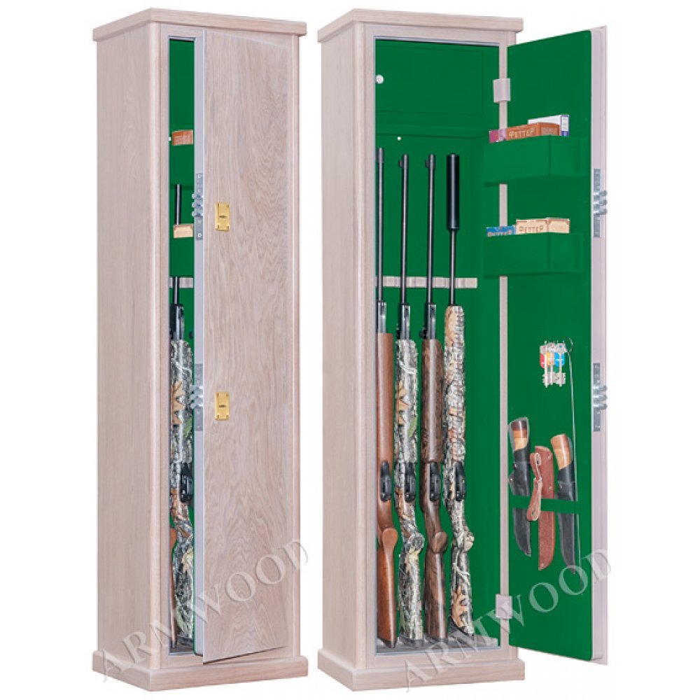 Внутри сейфа есть запираемое (патронное) отделение и деревянные ложементы, можно дополнительно установить съёмные полки.