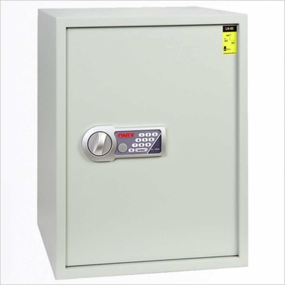 Дверь запирается электронным замком с возможностью настройки кодовой комбинации на замке от 3 до 8 цифр. Замок оснащен световым и звуковым оповещением, системой защиты от подбора кода и оборудован системой аварийного открывания, с помощью которой можно открывать сейф ключом входящим в комплект сейфа. Электронный замок мебельного сейфа Onix LS-52 работает от 4 батареек типа AA.