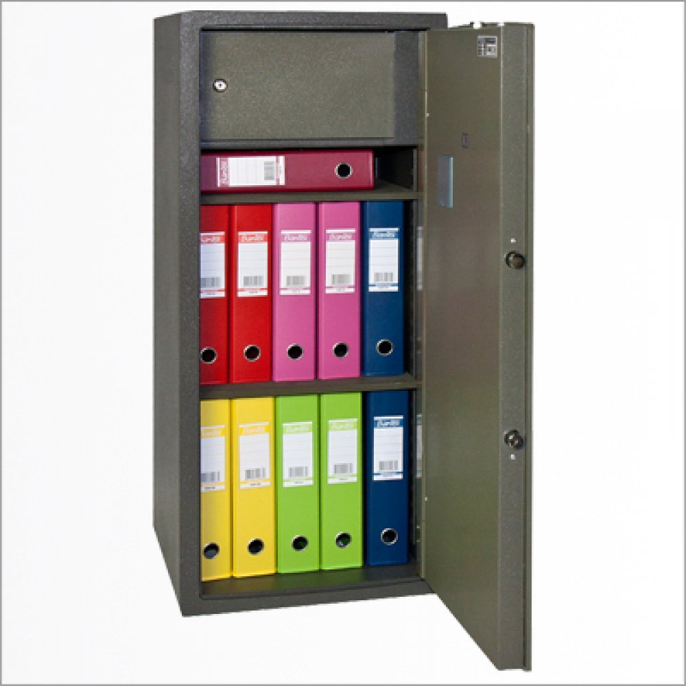 • Имеется возможность оснащения сейфа кассовой ячейкой (трейзером). В сейфах высотой от 650 миллиметров и более трейзер установлен по умолчанию. При необходимости его легко демонтировать и использовать дополнительную, регулируемую по высоте, полку