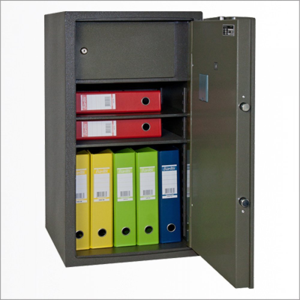• Имеется возможность оснащения сейфа кассовой ячейкой (трейзером). В сейфах высотой от 650 миллиметров и более трейзер установлен по умолчанию. При необходимости его легко демонтировать и использовать дополнительную, регулируемую по высоте, полку