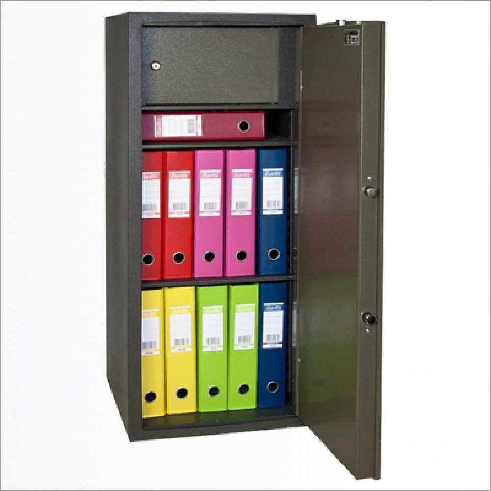 • Имеется возможность оснащения сейфа кассовой ячейкой (трейзером). В сейфах высотой от 650 миллиметров и более трейзер установлен по умолчанию. При необходимости его легко демонтировать и использовать дополнительную, регулируемую по высоте, полку