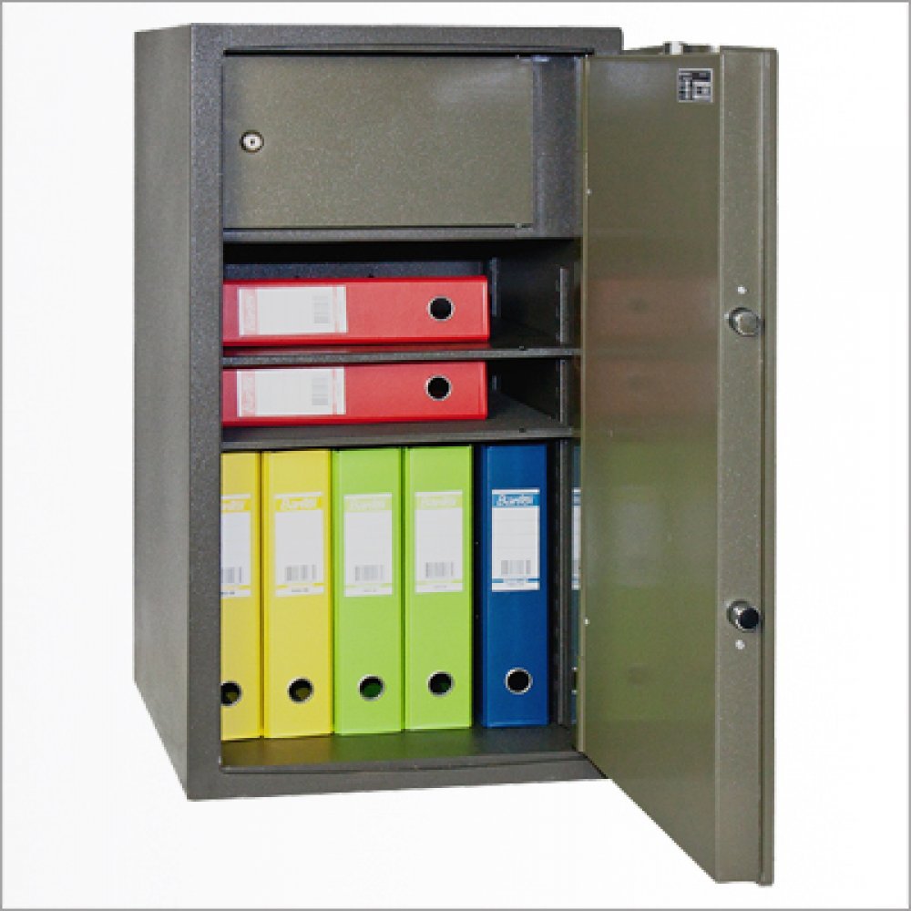 • Имеется возможность оснащения сейфа кассовой ячейкой (трейзером). В сейфах высотой от 650 миллиметров и более трейзер установлен по умолчанию. При необходимости его легко демонтировать и использовать дополнительную, регулируемую по высоте, полку