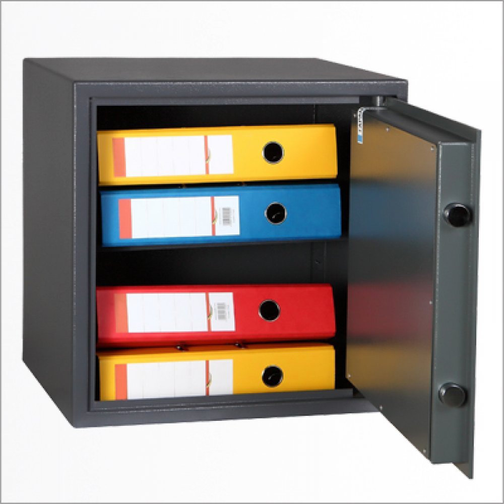 Корпус и дверь изготовлены из стали. Дверь сейфа с 2х ригельной системой запирания и защитой замка пластиной из высоколегированной марганцовистой стали.