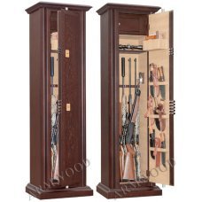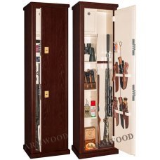 Шкафы с отделкой деревом используют для хранения документов, денег, драгоценностей, но особенно элегантно и солидно смотрятся оружейные сейфы и шкафы в дереве. Они могут иметь