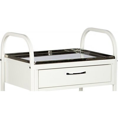 - Сверху трубы изогнуты и образуют удобные ручки для передвижения столика по больнице.