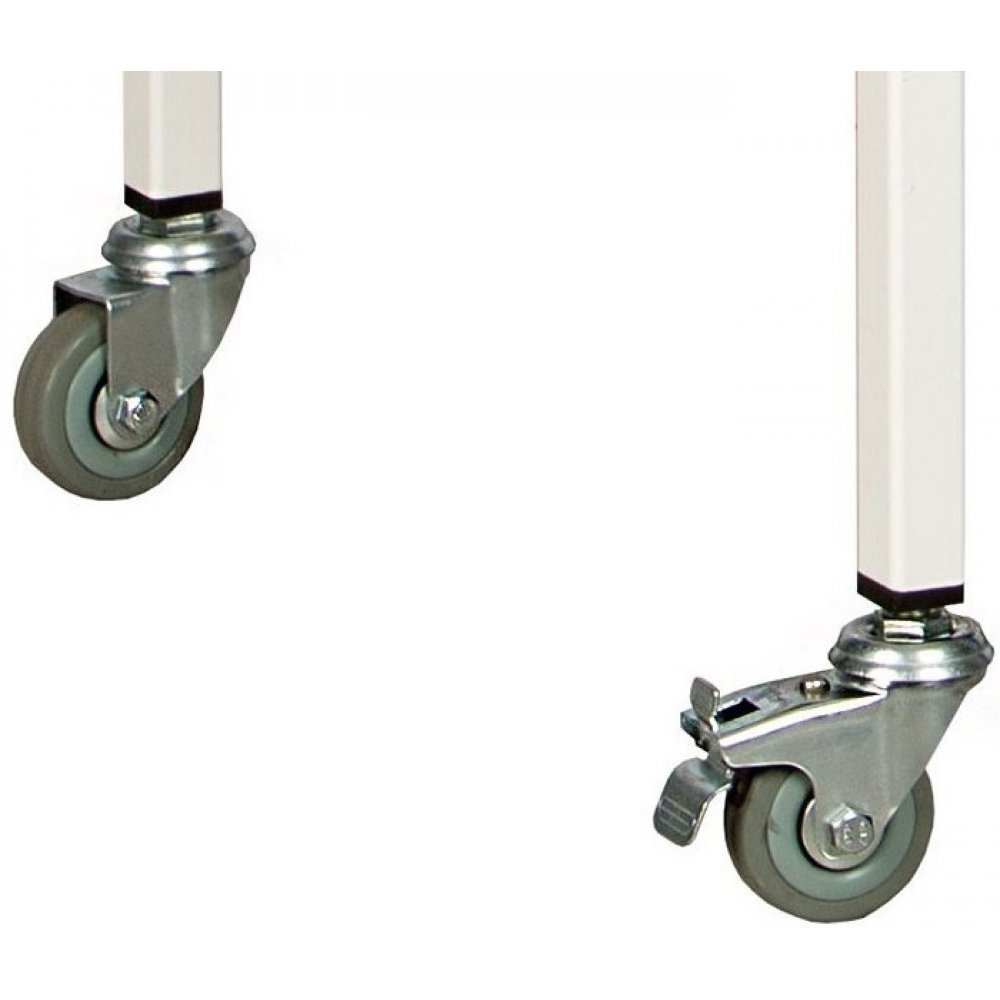 - Столик установлен на самоориентирующиеся колёса диаметром 50 мм, изготовленные из прочной серой резины, не оставляющей на полу следов.