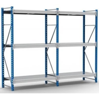 - Дизайн стеллажей – синие или светло-серые стойки с оцинкованными полками – производит приятное впечатление и удачно вписывается в любой интерьер складского помещения или торгового зала.