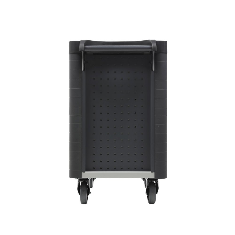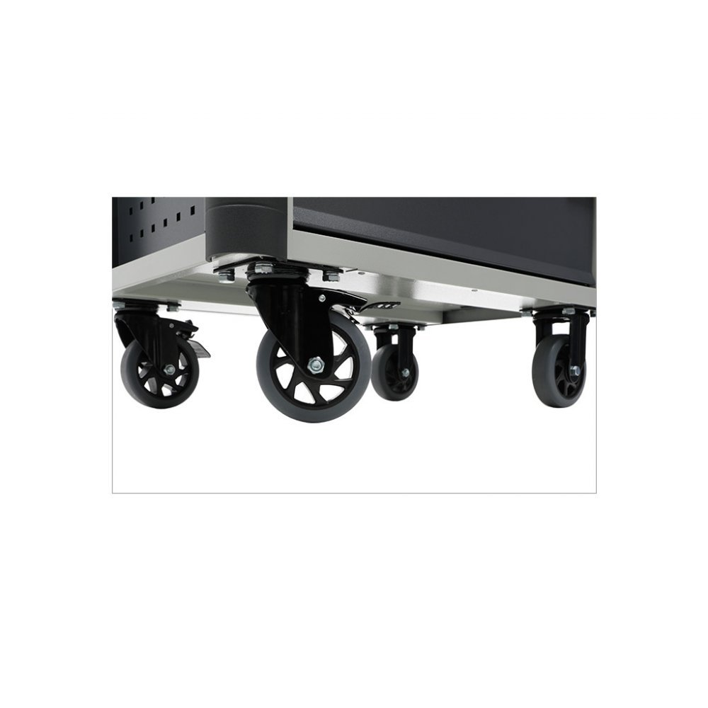- Перфорированные боковые стенки тележки, позволяющие размещать на них аксессуары (навеску для экранов)