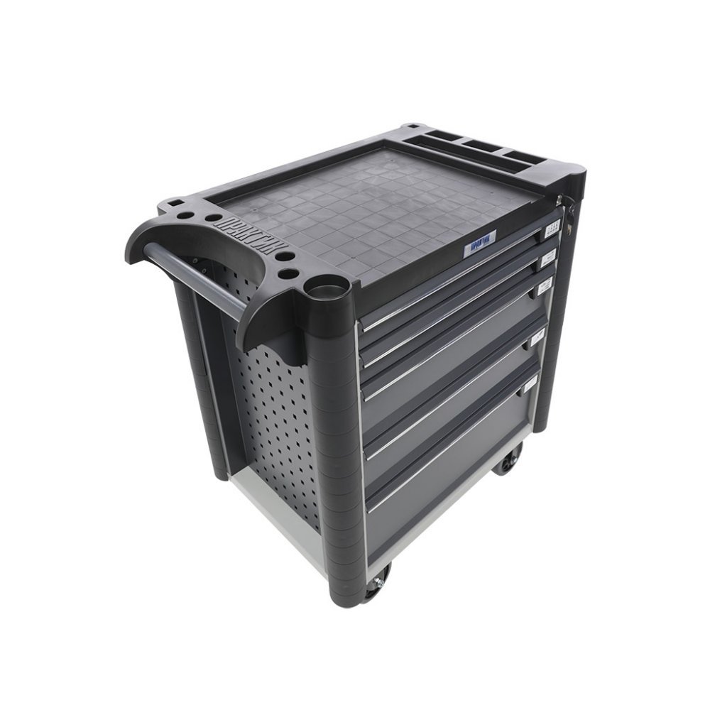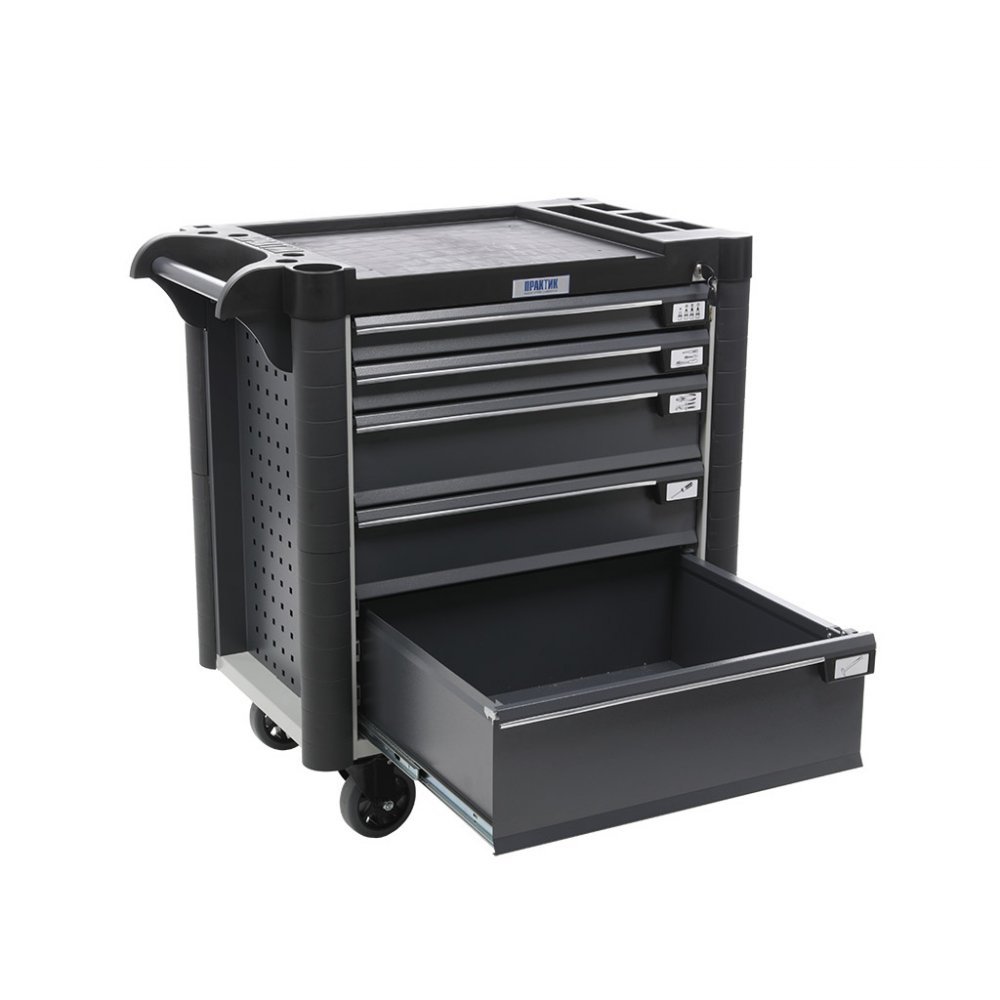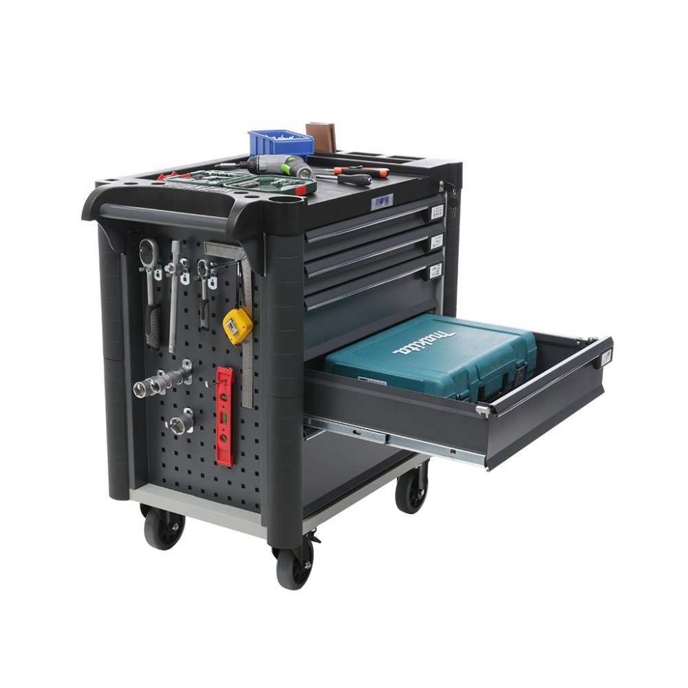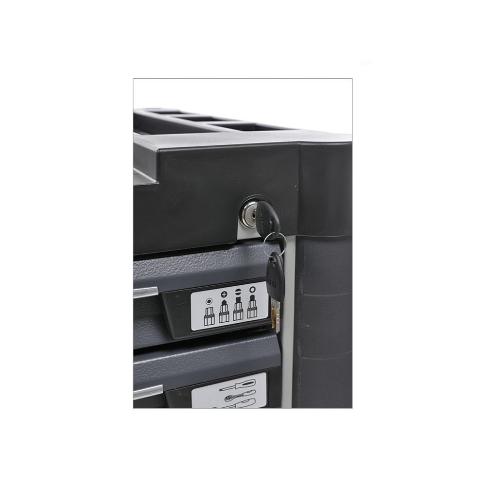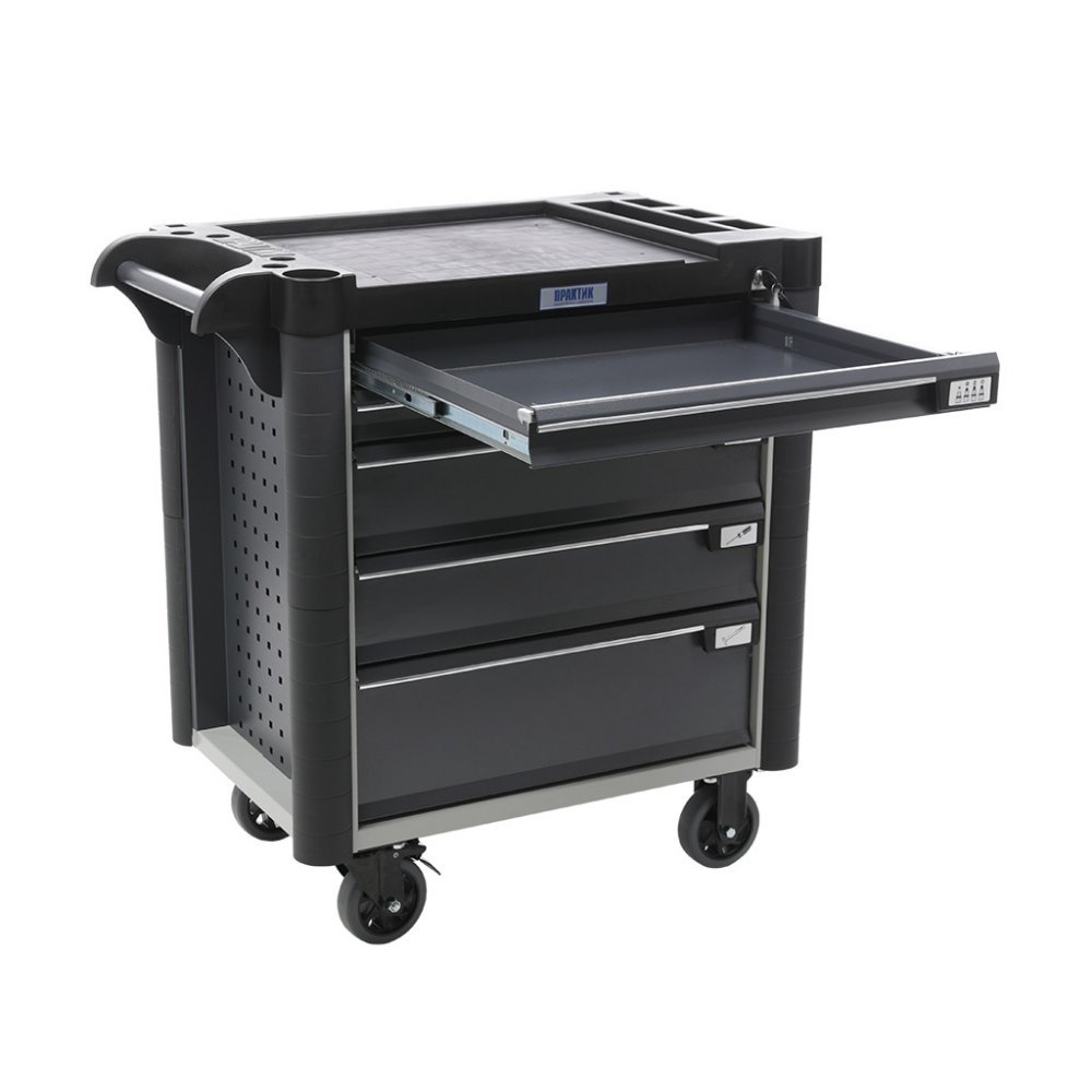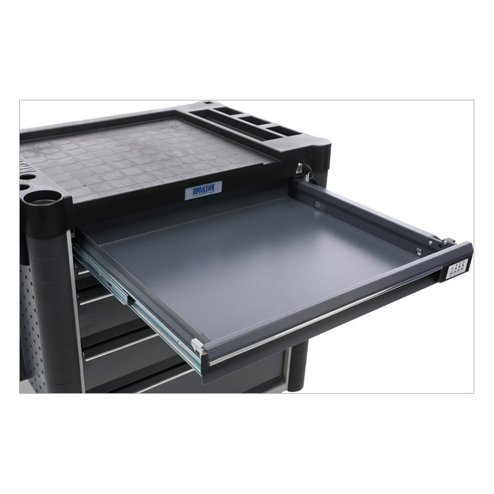 - Топ (пластик черного цвета) оснащён ложементами под инструменты для организации, хранения и удобства использования во время выполнения работ. Нагрузка на ТОП – 30 кг
