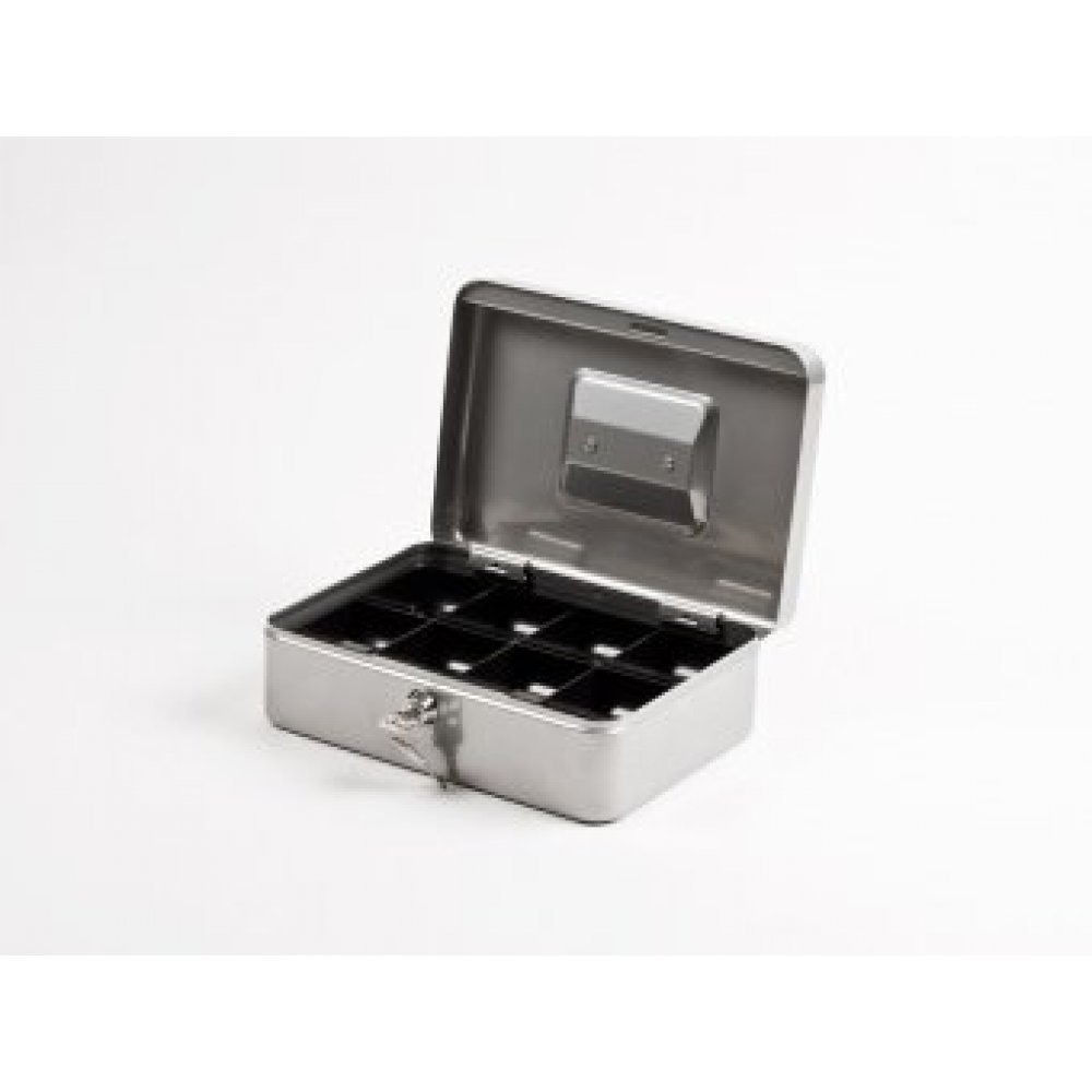 Кэшбокс Office-Force изготовлен из металла серебристого цвета, размеры — 25×18 см, высота — 9 см. Служит для хранения и безопасной транспортировки денег, ключей, мелких ценных предметов. Закрывается с помощью ключевого замка. На крышке удобная ручка для переноски. Внутри кэшбокса находится съемный пластиковый лоток с ячейками.