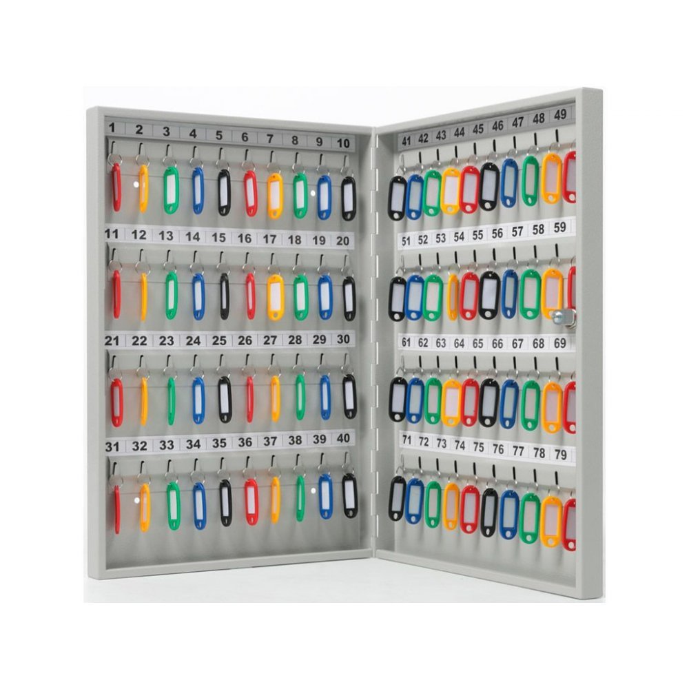 - В комплект ключниц входят пластиковые цветные брелоки, рассчитанные на количество ключей и самоклеящиеся номерки