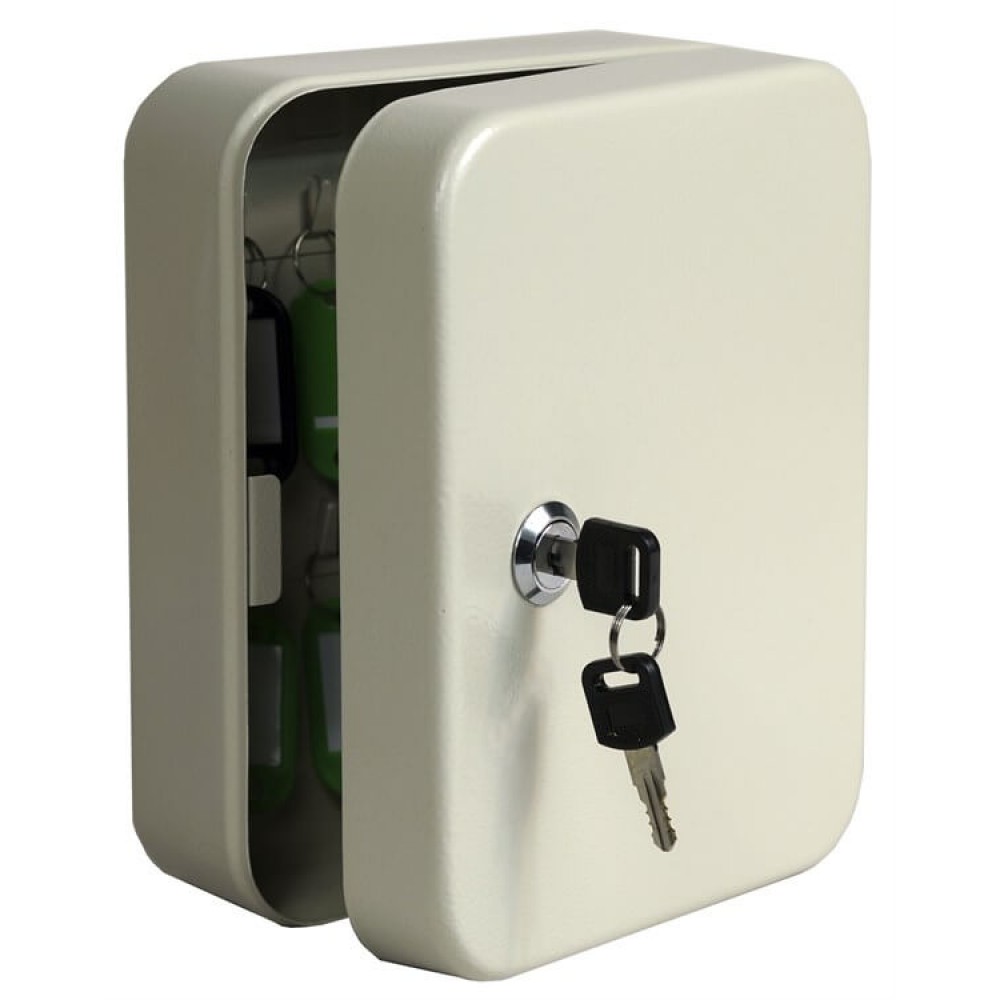Металлическая ключница на 20 ключей с ключевым замком. Отличный дизайн. Надёжная конструкция. Цветные бирки-брелоки в комплекте в подарок!!!! Ключница имеет отверстия для крепления к стене. Крепление к стене в комплекте.