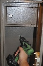 - Мебельный сейф. Крепится к деревянной мебели при помощи саморезов, или к стене и полу с использованием анкеров.