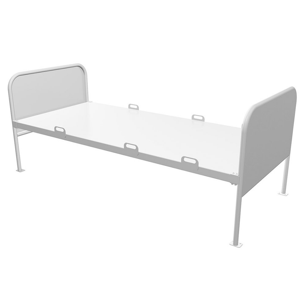 - Стационарная кровать Hilfe КМ-10 состоит из ложа под матрац (в комплект он не входит) и двух спинок-опор, сделанных из круглой стальной трубы 30×2 мм.