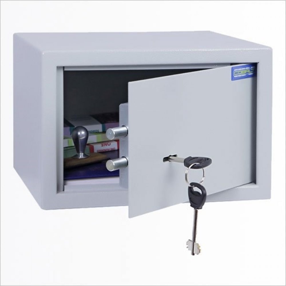 Сейфы с ключевыми замками по скромным ценам. Легкий и компактный мебельный сейф для хранения небольших предметов. Внешние габариты (ВхШхГ)мм: 170х260х230 Особенности конструкции: