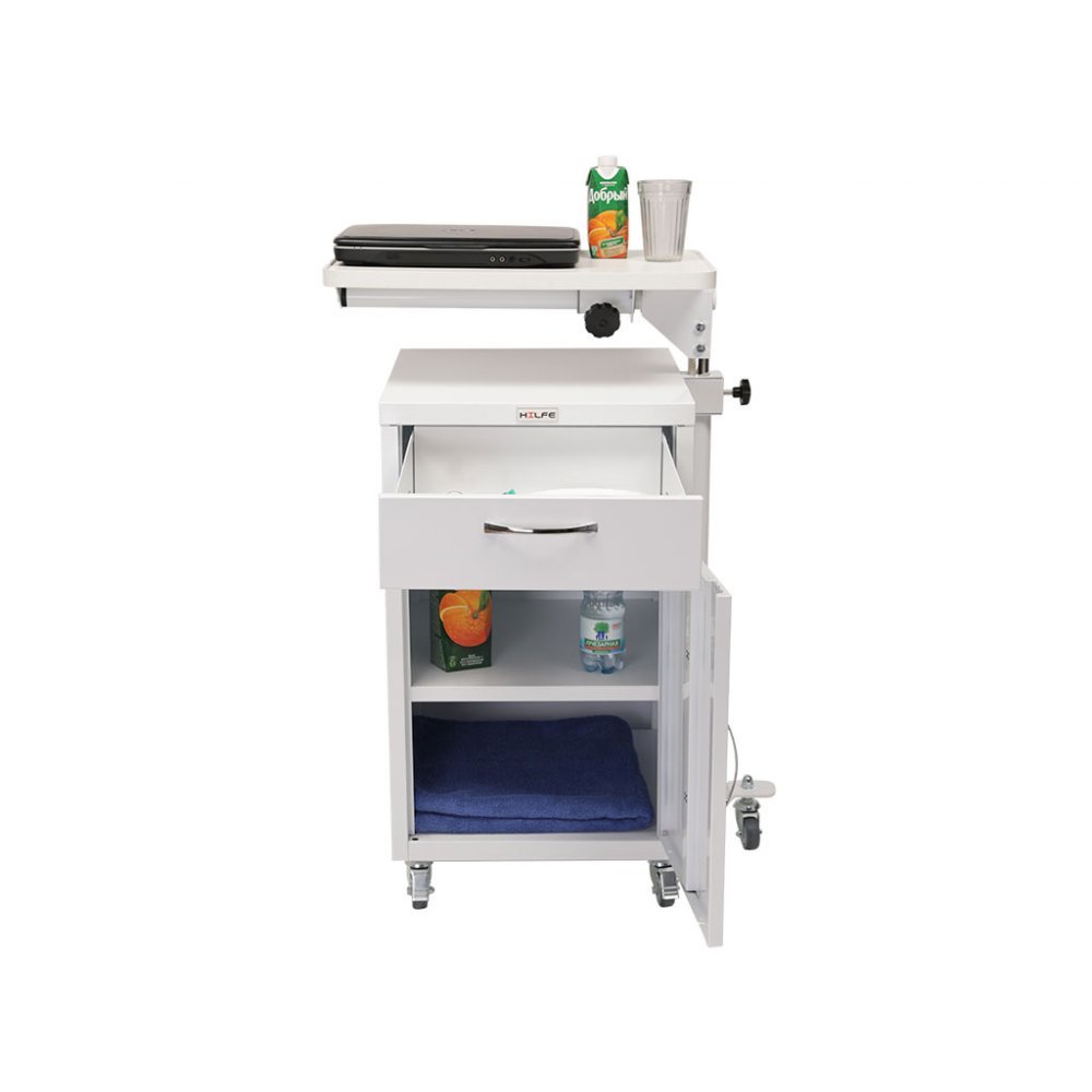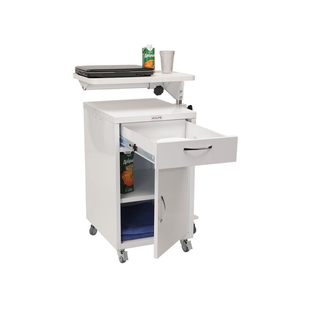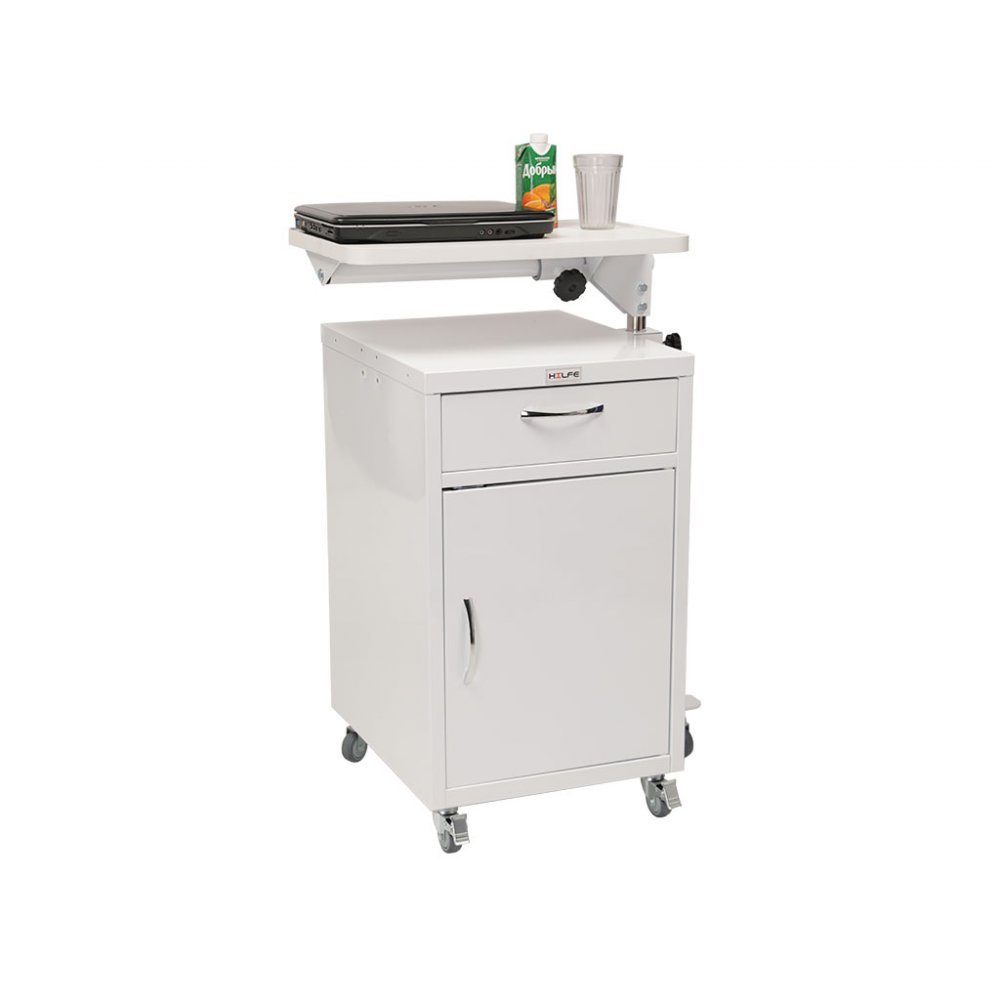 Предназначена для хранения личных вещей пациентов, медикаментов в больничной палате или домашних условиях. Тумба комплектуется прикроватным поворотным столиком, который помогает больному с постельным режимом принимать пищу, читать, разместить ноутбук для работы.