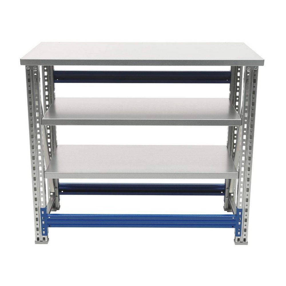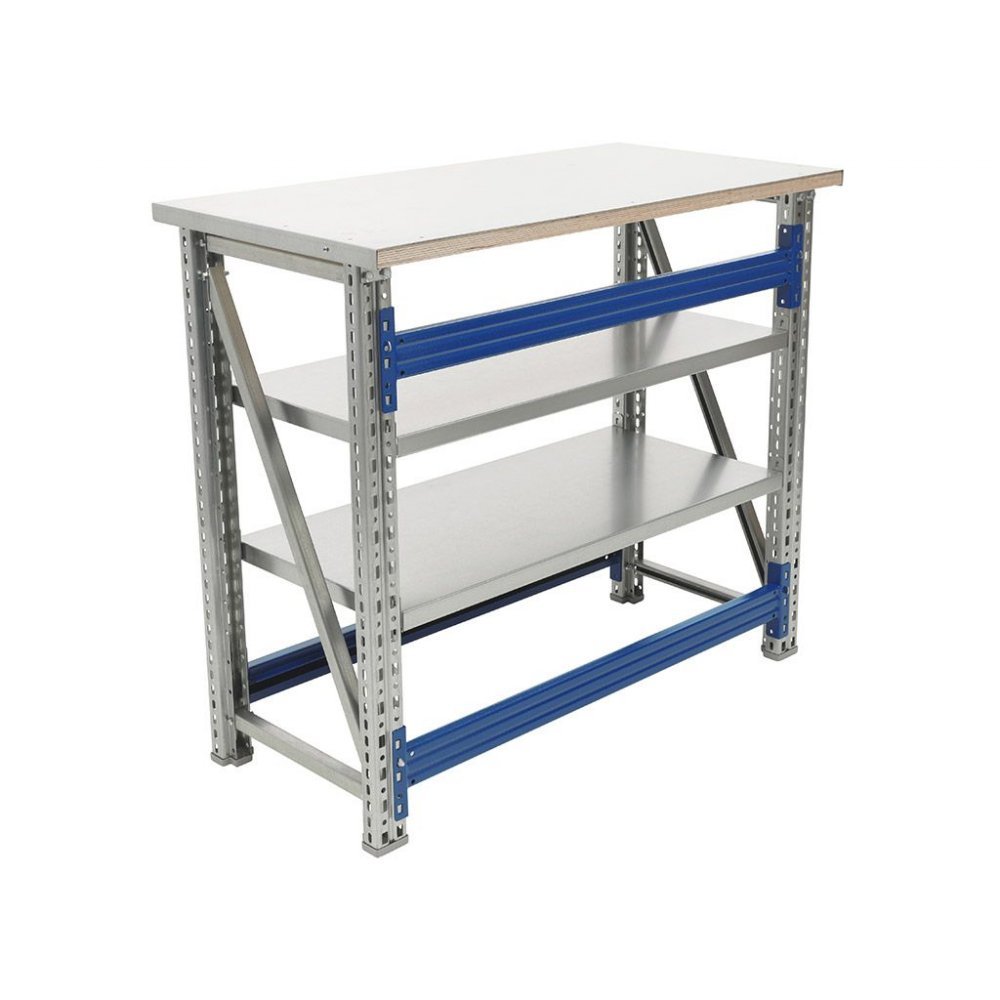 - Поскольку основные металлические детали – опоры, накладка столешницы, подпятники, полки – выполнены из оцинкованной стали, верстак Master можно держать в помещении с повышенной влажностью.