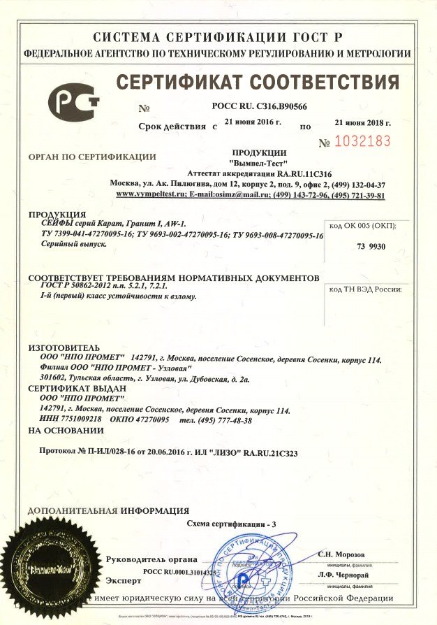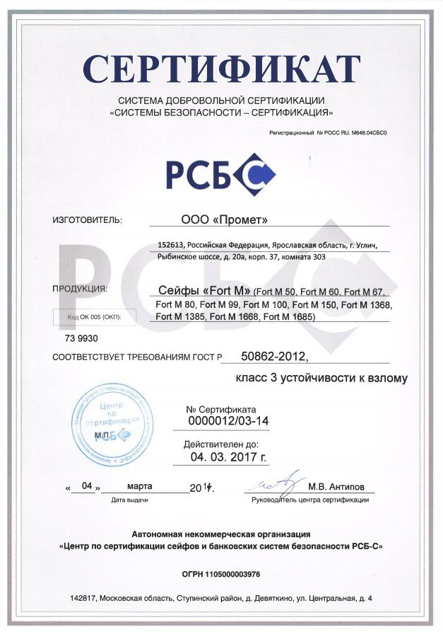 Все товарные позиции, представленные в интернет-магазине А-Сейф, имеют все необходимые российские сертификаты и подлежат полному сервисному и гарантийному обслуживанию.