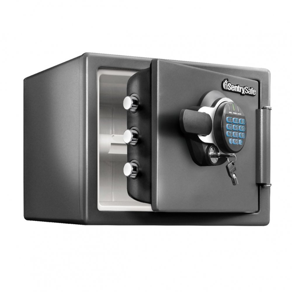 Цифровой сейф SentrySafe SFW082GTC предназначен для защиты документов, цифровых носителей и других ценностей от пожара, воды и кражи.