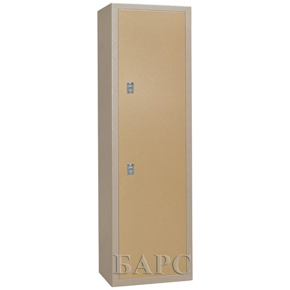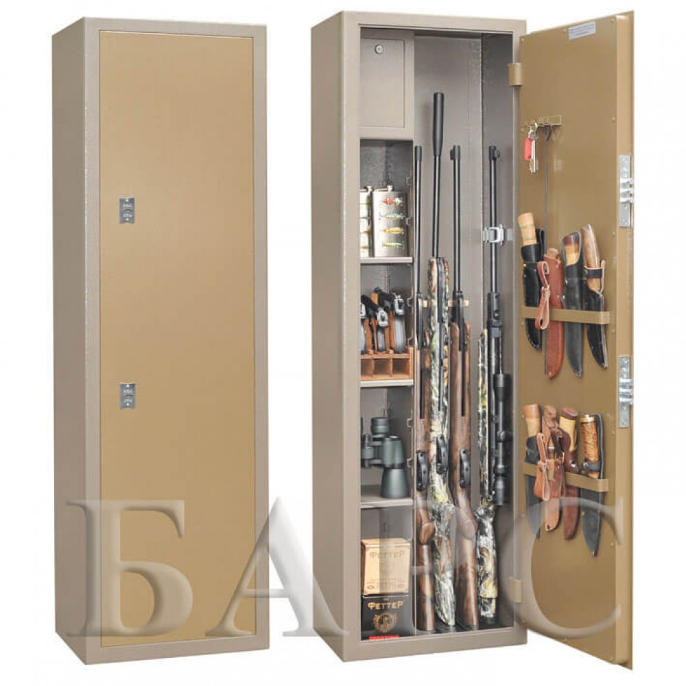 Запираемое (патронное) отделение и 3 съемные регулируемые по высоте полки. Ружья можно хранить как по одну сторону от перегородки, так и по обе стороны от перегородки. Внутренняя поверхность двери имеет крючки и держатели для хранения ножей, шомполов и т.п. Дно сейфа отделано ковролином. Удобный мягкий ложемент на три ствола из специального полимерного материала в комплекте. Ложемент легко устанавливается в любое нужное место шкафа.