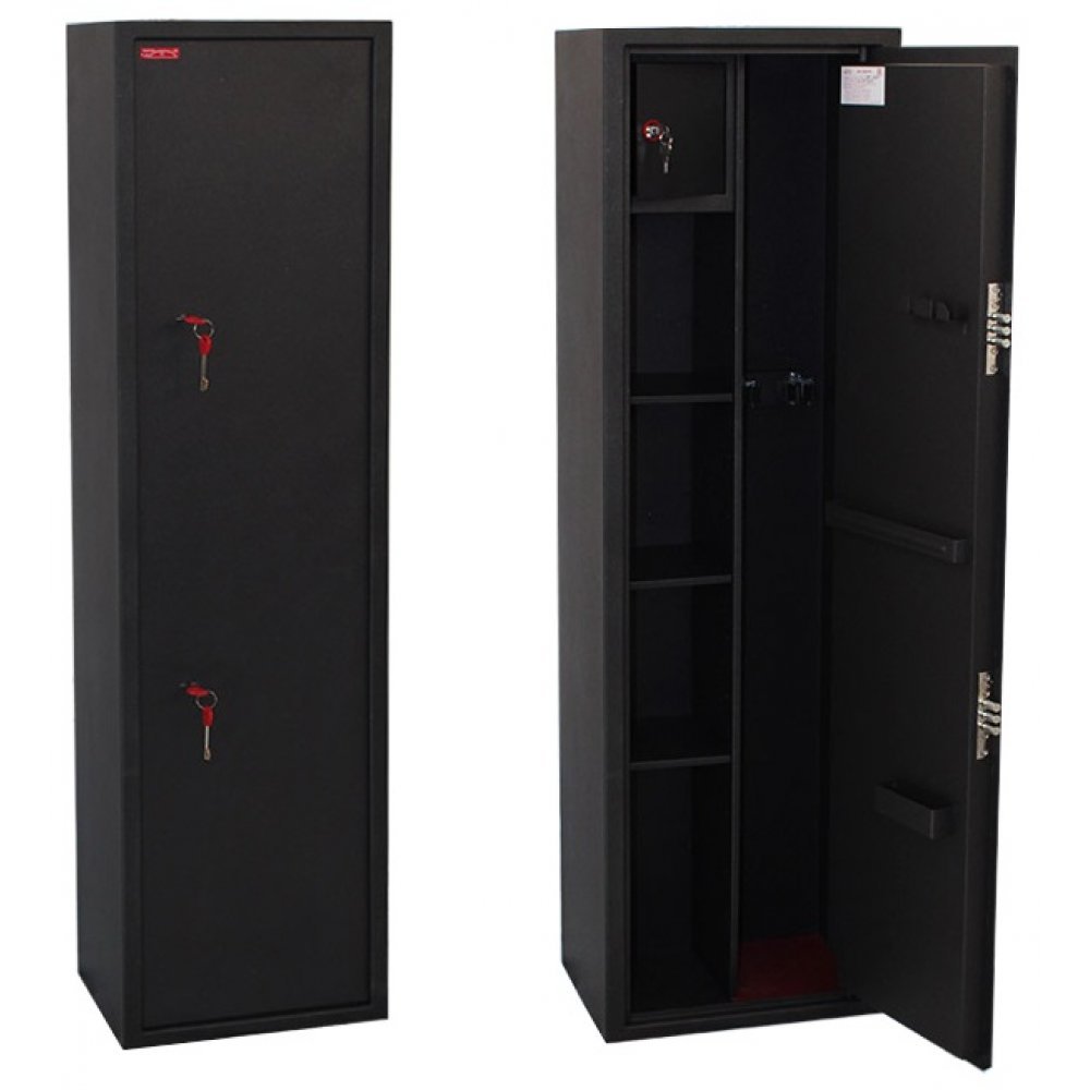 Шкаф предназначен для хранения и ограничения несанкционированного доступа к гражданскому и служебному оружию, боеприпасам и принадлежностям. Шкафы представляют собой цельносварную металлическую конструкцию, соединение элементов которой выполнены методом сварки сплошным швом по контуру прилегания элементов. Глубина шкафа, расстояние между полками, угол открывания двери подобраны для рационального размещения оружия, боеприпасов и других принадлежностей.