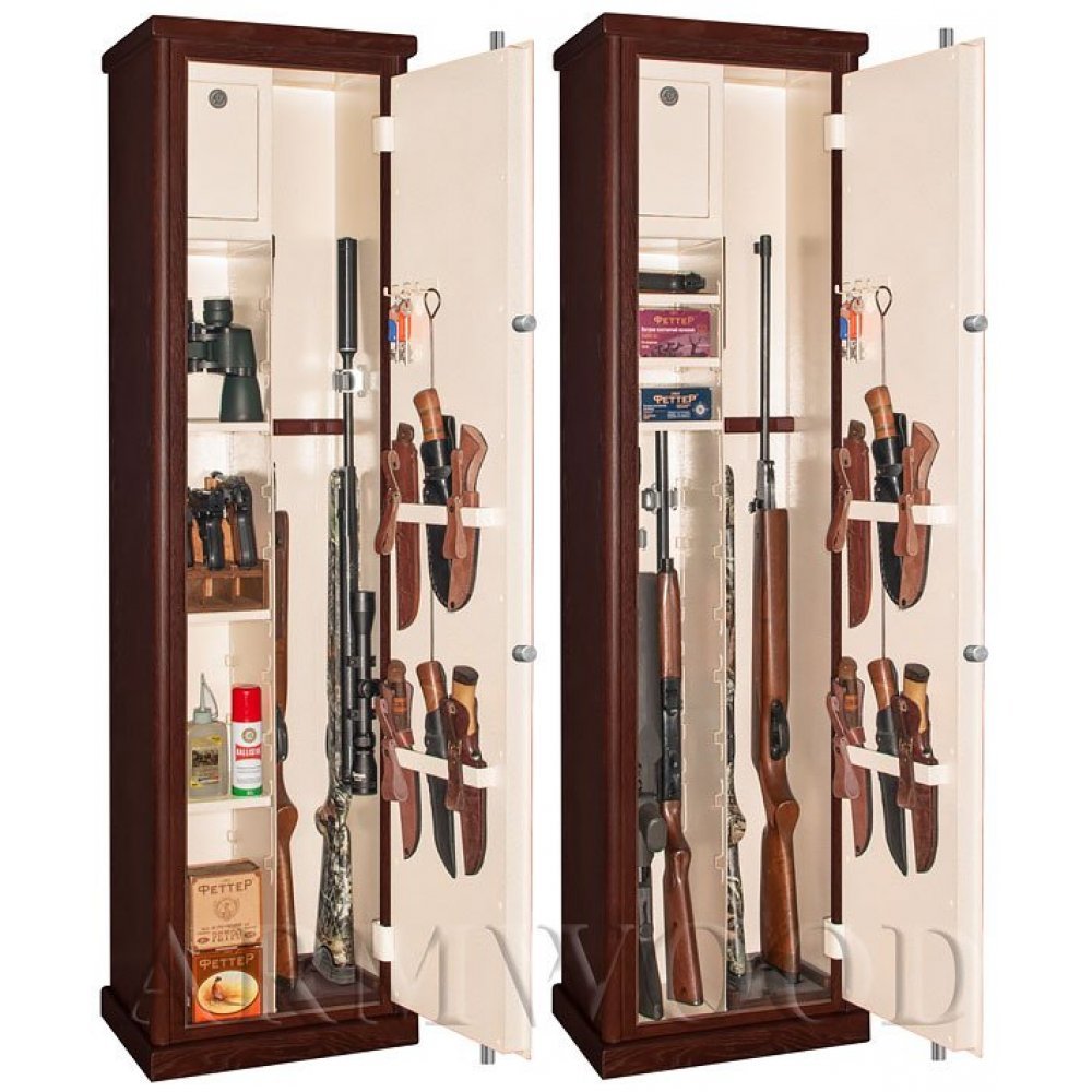 Сейф под оружие с с отделкой деревом, с максимальной высотой для хранения ружья 1360 мм.