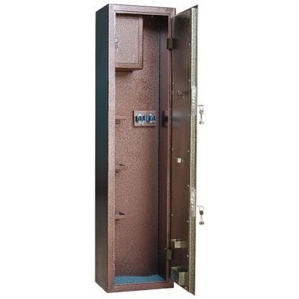 Сейф односекционный, на 2 ствола оснащен съемными полками и отделением под патроны. Ложементы — металлические держатели с резиновыми роликами. Два замка ЗАО "Про-Сам" г. Рязань или аналогичные замки другого производителя.