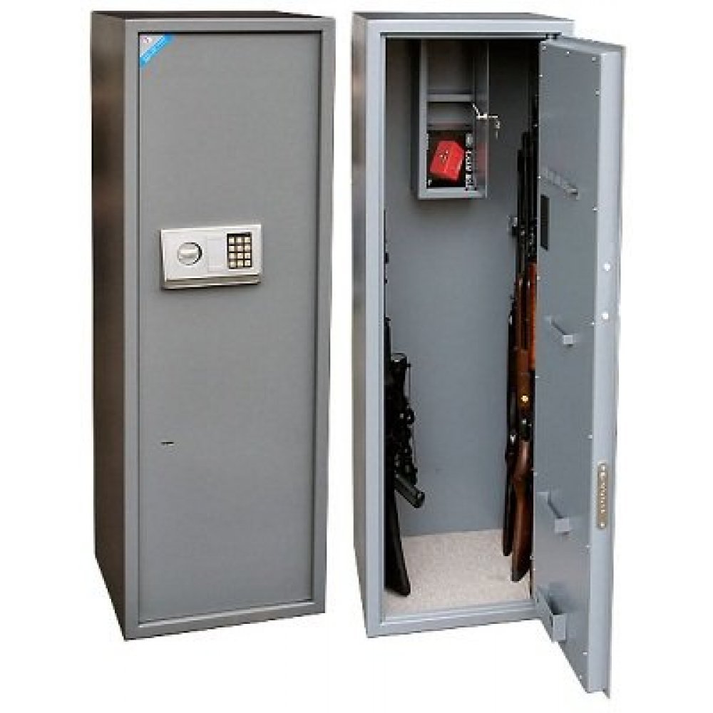 Шкаф односекционный, на 6 стволов оснащен отделением под патроны. Ложементы — металлические держатели с резиновыми роликами. В двери установлен замок электронный сейфовый мод. ЕА который соответствует ГОСТ Р 51053-97, п.п. 5.1-5.4, 5.7 и классу А. второй замок ЗАО "Про-Сам" г. Рязань или аналогичный замок другого производителя.