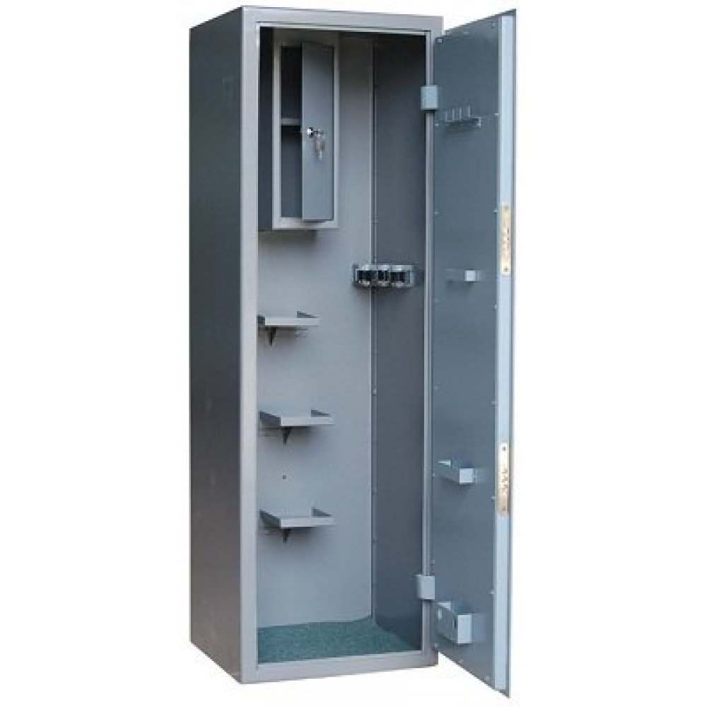 Сейф односекционный, на 6 ствола оснащен отделением под патроны. Ложементы — металлические держатели с резиновыми роликами. Два замка ЗАО "Про-Сам" г. Рязань или аналогичные замки другого производителя.