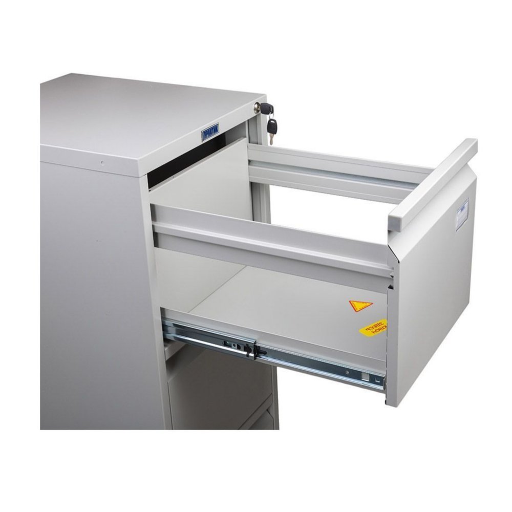 - Устройство антиопрокидывания не позволяет выдвинуть сразу два и более ящика и уронить картотеку на себя.