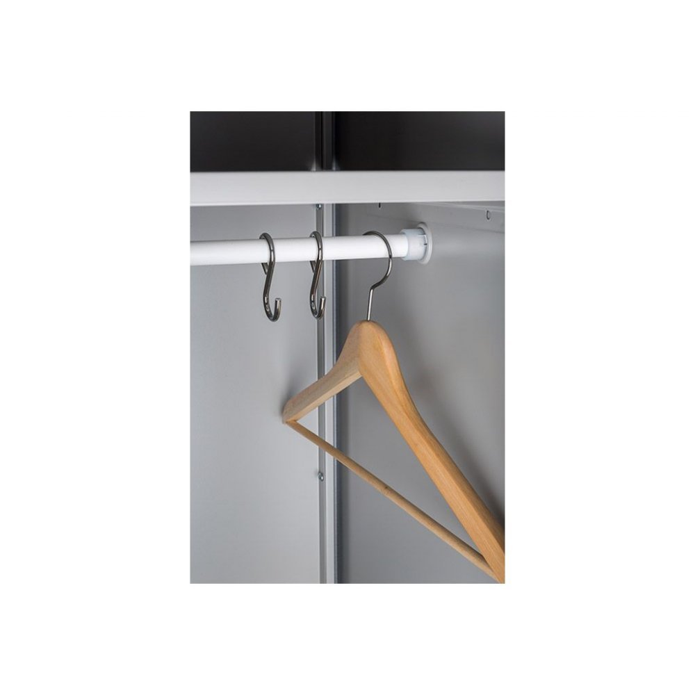 - Внутри каждой секции находятся: полочка для головных уборов, перекладина для плечиков, крючки для одежды.