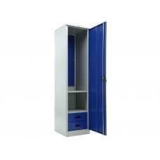 Шкафы изготавливаются из оцинкованной листовой стали и покрываются порошковым красителем. Корпус – серый полуматовый шагрень, двери – гладкие синие.