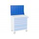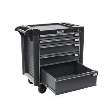 Корпус изготавливается из высококачественной стали. Окрашивание поверхностей проводится порошковым методом с применением красителей серого (RAL 7038) и синего (RAL 5002) цвета. Верхняя крышка конструкции имеет специальное покрытие, которое препятствует растеканию масла и позволяет легко его убрать. На стоимость влияет количество дополнительных элементов конструкции. Особенно важным является наличие ящиков, где удобно хранить различные инструменты и детали. Они имеют телескопическую систему направляющих элементов. Также предусматривается возможность полного вытягивания ящиков. Все телеги с такими конструкционными элементами, как правило, оснащаются ключевым замочным механизмом. Это необходимо для предотвращения самовольного открывания, а также для сохранности расположенного внутри имущества.