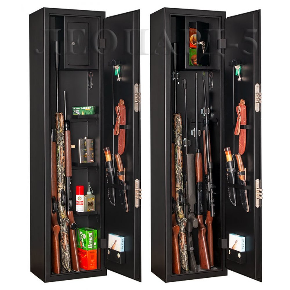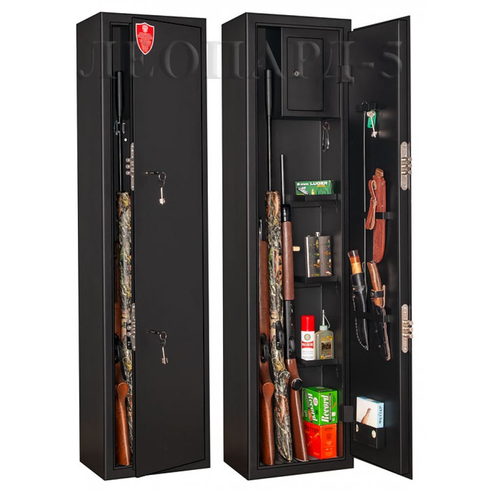 Сейф полностью удовлетворяет требованиям МВД и Росгвардии к хранению оружия физическими и юридическими лицами. Толщина металла не менее 3 мм. Оснащен двумя сейфовыми замками второго класса. Оборудован удобными ложементами для хранения оружия. Имеются анкерные отверстия на задней стенке сейфа для крепления к стене.