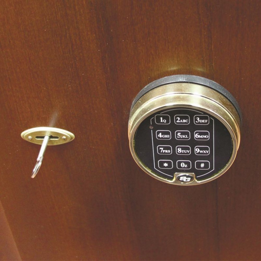 Дверь сейфа Stark 339MC имеет ригельную систему запирания, запирается электронным кодовым и ключевым замками, имеет защиту замка от высверливания, толщина лицевой панели двери 10 мм.