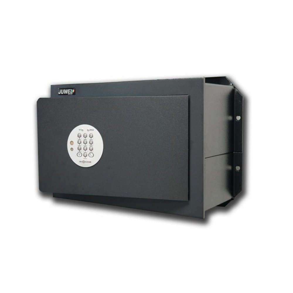 - Надёжность сейфа Juwel 5644 гарантирует сложная конструкция двери: усиление за счёт лицевой панели в виде листа стали 8 мм, стальной защитный кожух на внутренней стороне, противовзломные U-образные фальцы 4 мм. В область замка введена дополнительная твердосплавная пластина из марганцевой стали. Прокладка из огнеупорного материала создаёт начальную защиту в случае пожара. Общая толщина двери равна 55 мм.