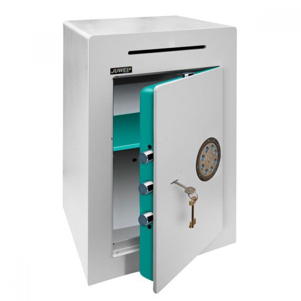 Корпус сейфа Juwel 6878 изготовлен из стального листа толщиной 3 мм, толщина лицевой панели - 8 мм, в верхней части корпуса есть прорезь.