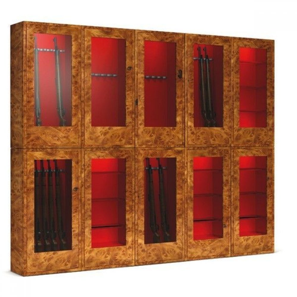Модульная система сейфов в виде витрин позволяет создавать любые комбинации под необходимый дизайн интерьера. Такая система применяется при большом личном арсенале или при установке в салоны оружия.