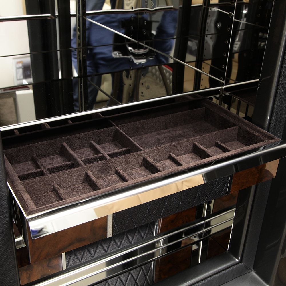 Каждый сейф BENTLEY с двух сторон задекорирован натуральной кожей, их корпуса многократно залакированы и покрыты карнаубским воском. Внутренняя отделка осуществляется согласно пожеланиям заказчика.