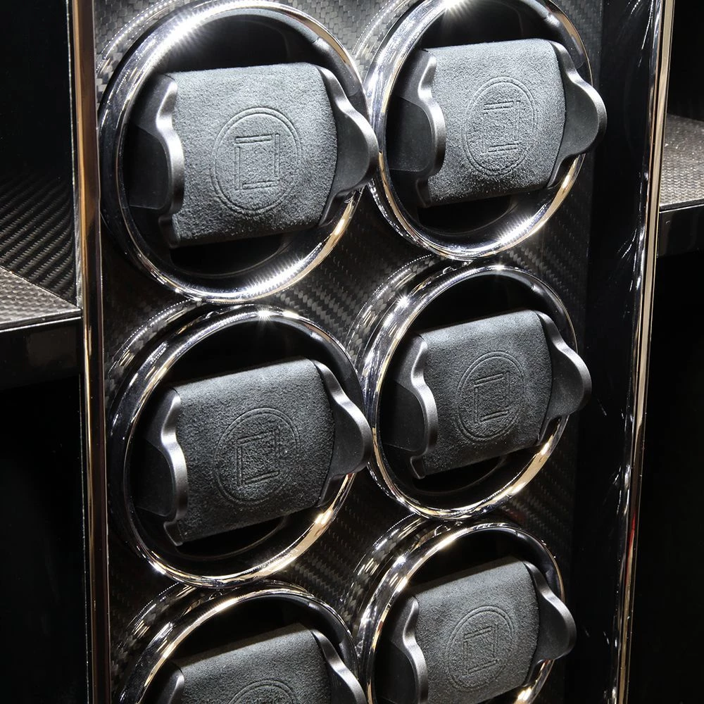 Внутренние поверхности сейфа впечатляют своей роскошью – отделкой красной алькантарой, кожей, карбоном и древесиной. В декорировании сейфа присутствует много хромированных деталей, что придает изделию некую «хайтечность», наряду с респектабельной строгостью классики. Как в часовом сейфе люкс класса у Brabus SV12 продуманы отделы для хранения особых ценностей – дорогих сигар и элитных напитков. Также, сейф этой модели отличается вместительностью, полезный объем сейфа - более 180 литров. Brabus SV12 позаимствовал свое название от самого мощного серийного двигателя, и именно поэтому он оборудован 12-тью виндерами для автоподзавода и демонстрации часов.
