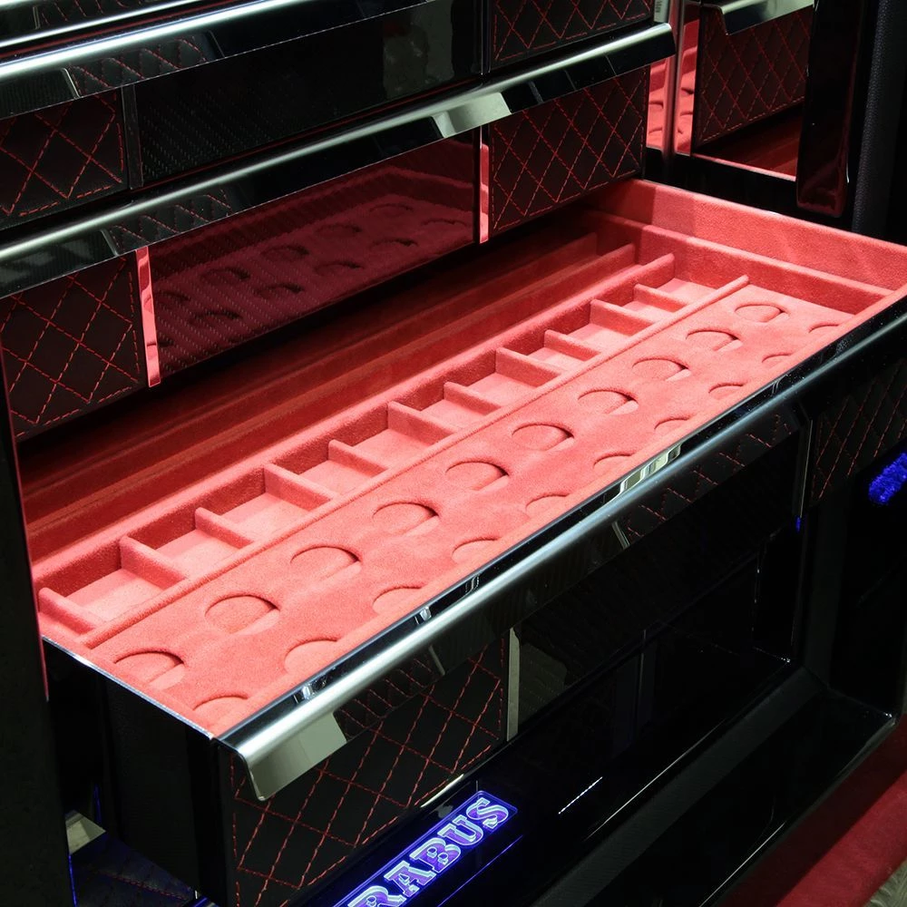 Люкс-сейф Brabus SV12 как нельзя лучше впишется в ваш интерьер благодаря своему элегантному дизайну, при этом гарантируя наилучшую степень сохранности ценных вещей. Будучи выдержанным в строгом, ультрасовременном стиле, этот сейф воплощает собой более чем гармоничное сочетание функциональности и превосходного дизайна. Корпус и дверь сейфа размером 127х67х55, покрытые высококачественным черным лаком, имеют строгую прямоугольную форму, а ручка, расположенная прямо по центру дверцы и украшенная эмблемой Brabus, полностью сделана из латуни. На обратной стороне двери имеется табличка с индивидуальной гравировкой.