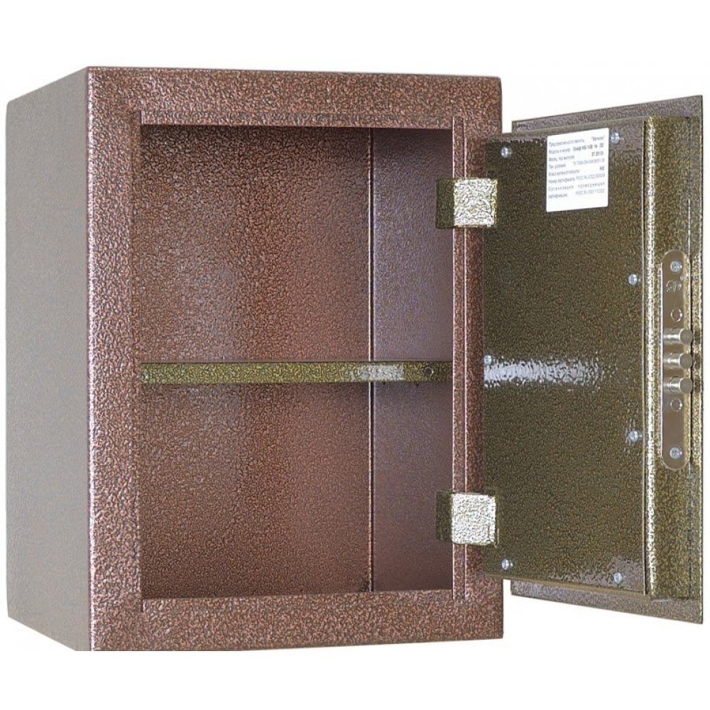 Сейф односекционный, оснащен съемной полкой. В двери установлен ключевой 8-ми сувальдный замок ЗАО «Про-Сам» г. Рязань или аналогичный замок другого производителя.