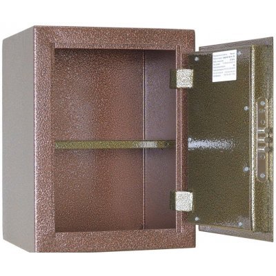 Корпус сейфа толщиной 2 мм, дверь толщиной 2 мм. На задней стенке корпуса расположены отверстия для крепления.