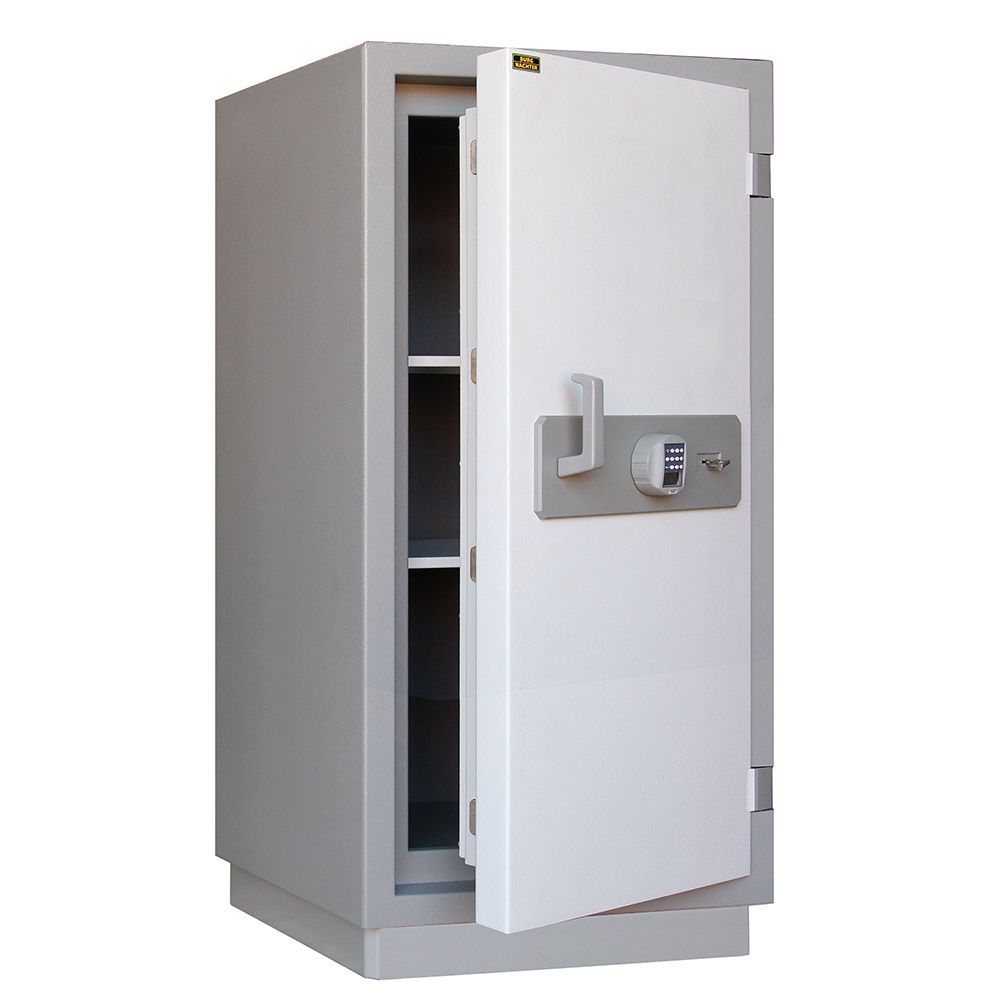 Каркас изготовлен из огнеупорных материалов: между двумя листами стали размещается бетонный термический наполнитель. Е 556 ES оснащен усиленным режимом безопасности: электронным кодовым замком с шестизначной комбинацией, ключевым замком и сканером для идентификации по отпечатку пальца.