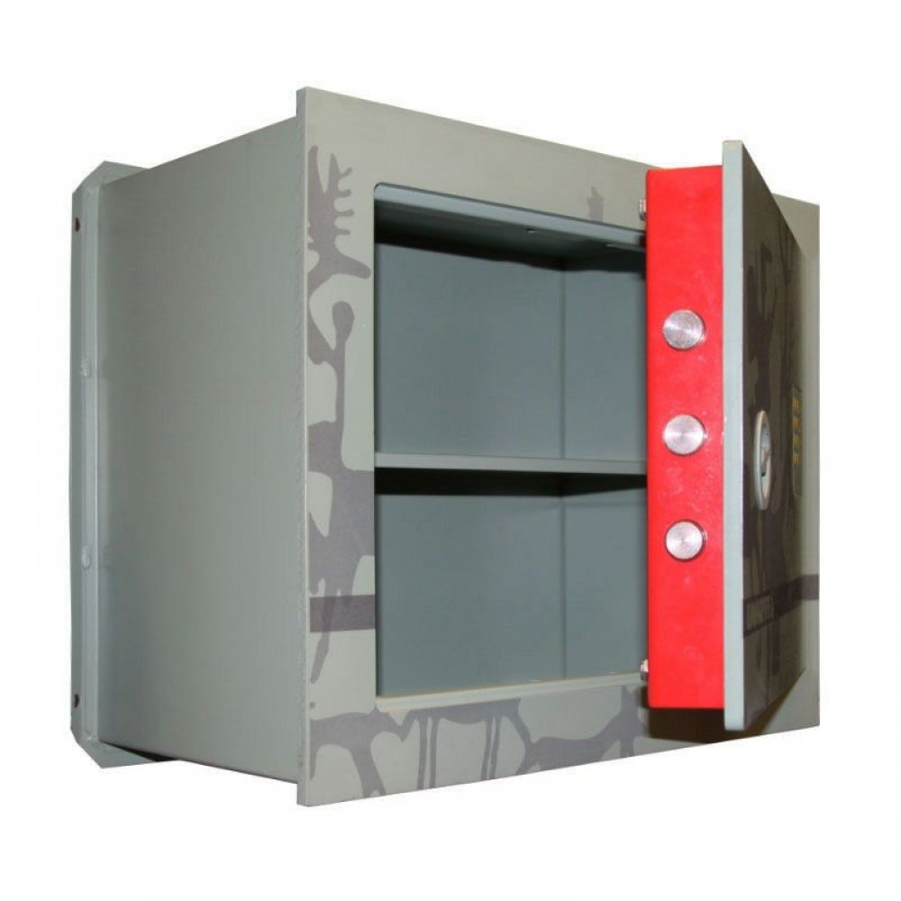 Встраиваемый сейф с интересным орнаментом на лицевой стороне. Запирается на электронный замок.